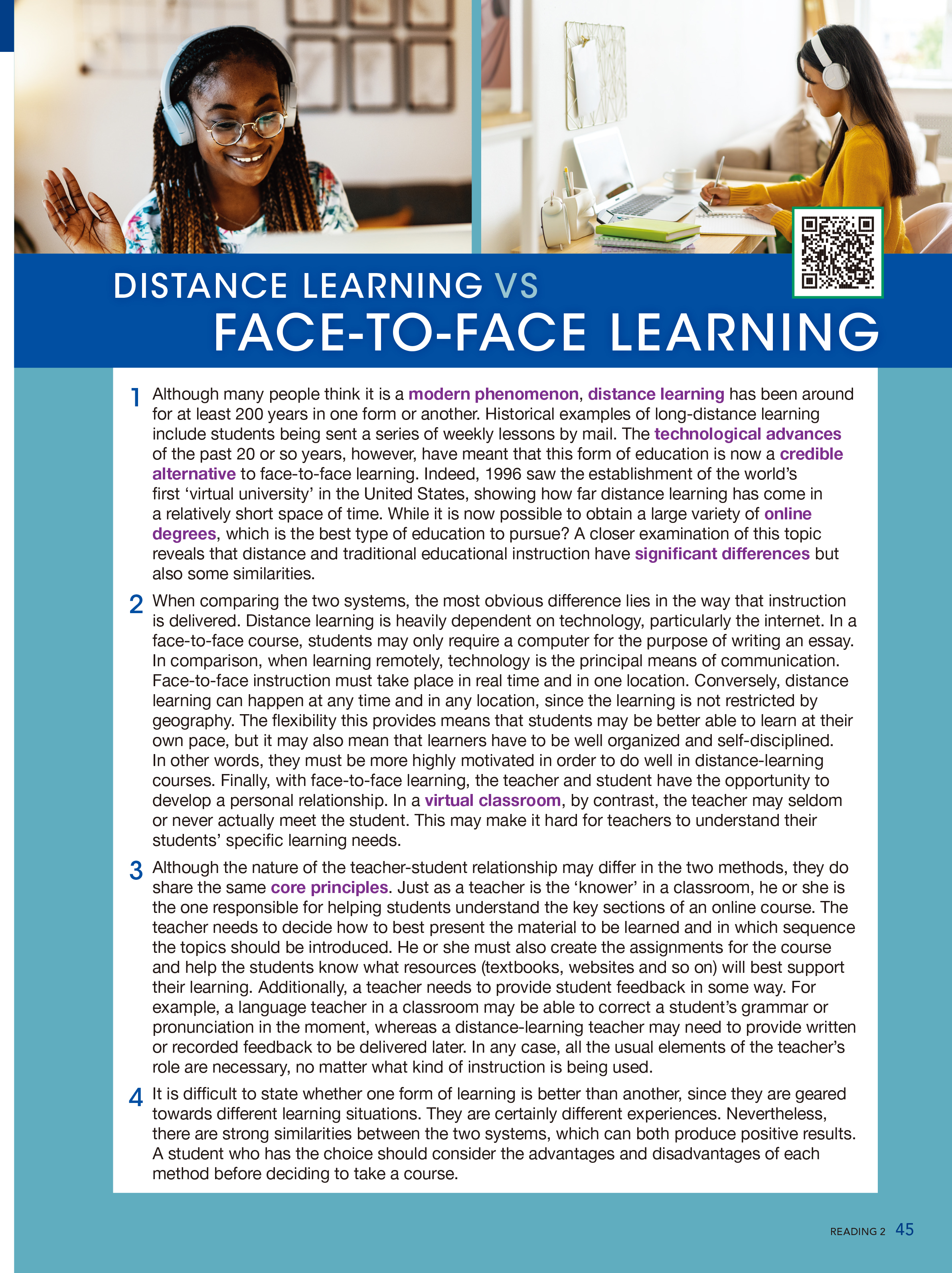 Unlock Reading, Writing & Critical Thinking Student's Book with Digital Pack Level 4 prepares students for their academic studies by developing their reading, writing, critical thinking, and grammar for writing. QR codes on the pages give easy access to audio of the reading passages. The accompanying video program sets the stage for each unit's topic with lessons in both the Student's Book and the Digital Workbook. The Student's Digital Pack includes an eBook with interactive activities, audio and videos, Digital Workbook for additional practice, and downloadable audio. All content is mobile-friendly and can be accessed on any device.