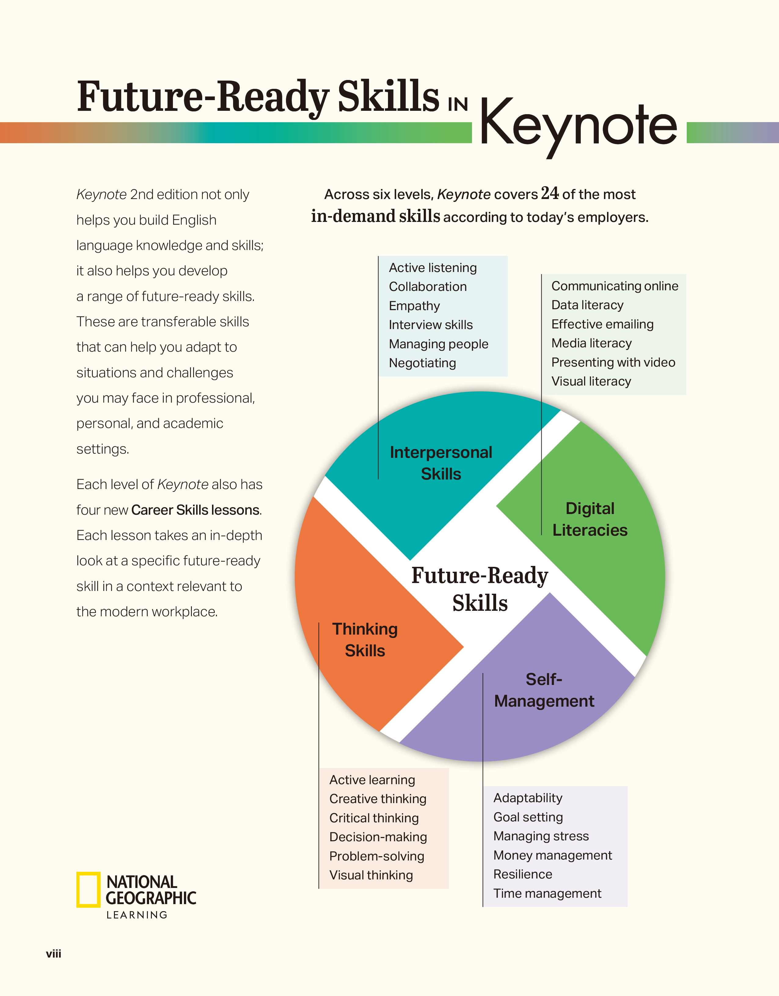 The second edition of Keynote is the ideal course for young adult and adult learners who are preparing to use English in an increasingly connected global world. Learners develop English alongside the future-ready skills needed to effectively communicate across professional, personal, and academic settings.