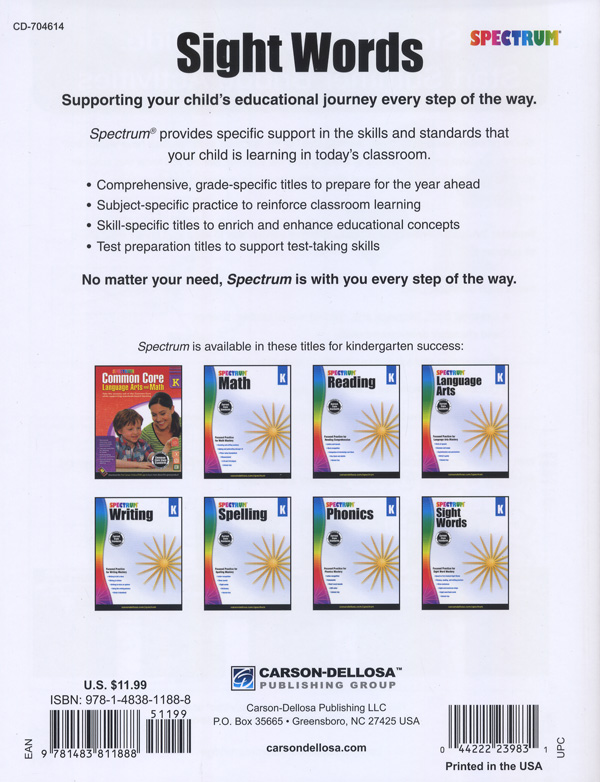 Spectrum Sight Words (2014) K