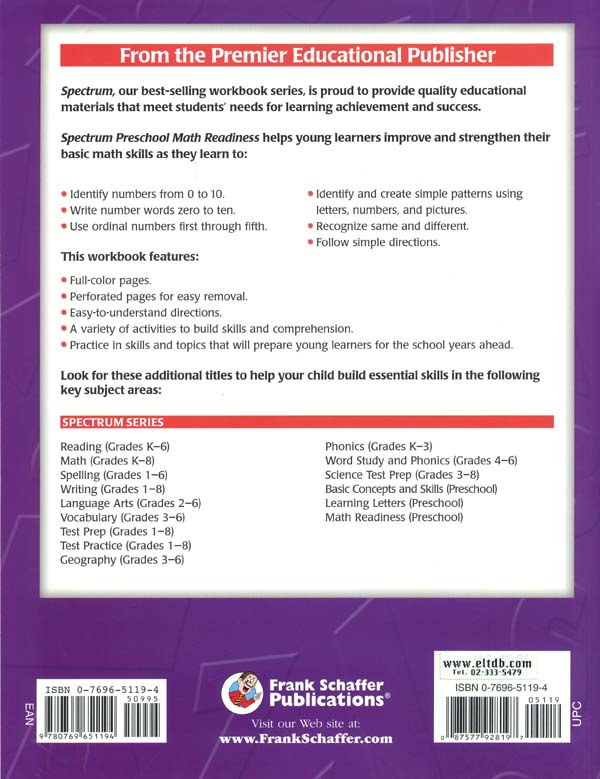 (중고)Spectrum Preschool Math Readiness